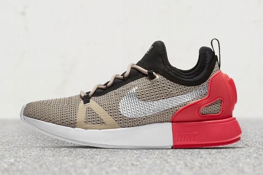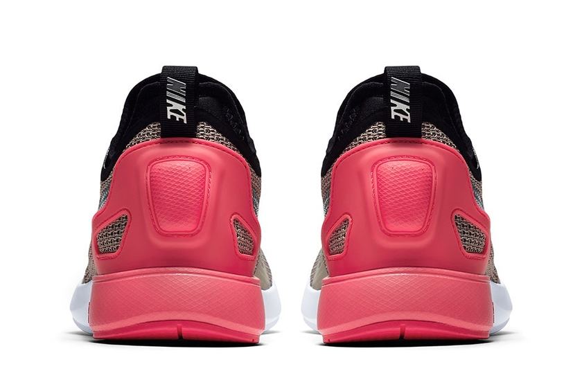 以诞生于 80 年代的复古跑鞋 Duellist 为原型,并采用和 Mariah Flyknit 一致的一体化设计而成的 Nike Duel Racer,实为品牌的全新跑鞋款。其靴式流线型鞋身结构,及以网眼结合氯丁橡胶材质编制,更延续了前足两侧的三角形合成覆面,搭配后跟 TPU 支架和拼接中底而成。鞋款已先后迎来四款配色,这回新增的以浅棕色作为鞋面,并配上粉红色后跟作为强烈对比,继续为各运动人士带来多一个选择,鞋款将于 7 月 6 日在 Nike 专门店及网上商店发售,售价将为美金 $120 元。