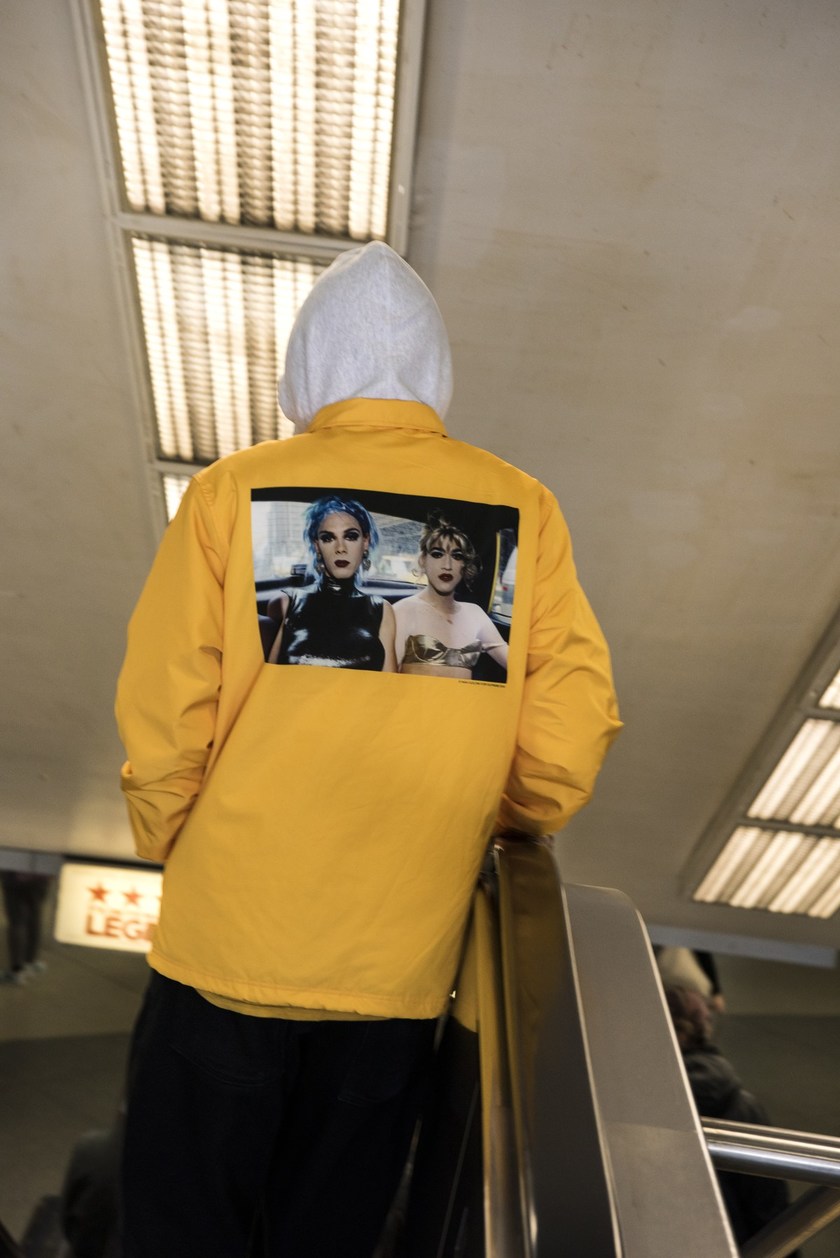 Supreme 继承了这一意志,本周带来一款教练夹克、一款卫衣、三款 T-Shirt、三款滑板,使用了 Goldin 的经典摄影作品《Misty and Jimmy Paulette in a taxi》、《Kim in Rhinestones》、《Nan as a dominatrix》。