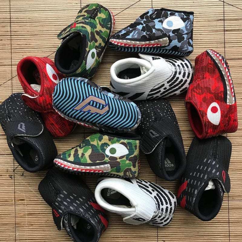 而在这一推 Mini 版本的 adidas Dame 4 中,除了几款普通配色之外,我们不难发现有3双 BAPE 装扮的 Mini Dame 4 混在其中。猿头迷彩、鲨鱼牙等 BAPE 标志性元素依旧出现在鞋面之上,加上Q版的鞋型设计,十分可爱。