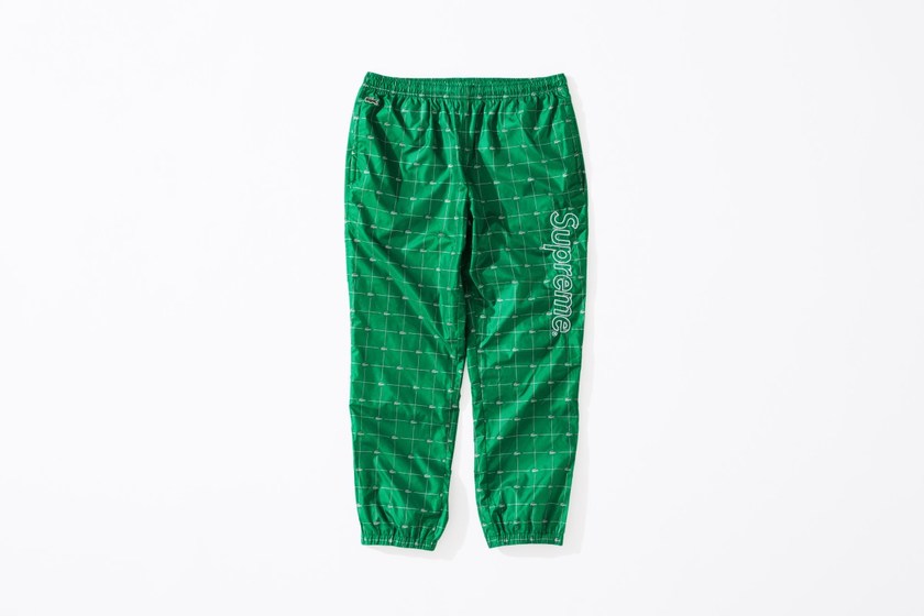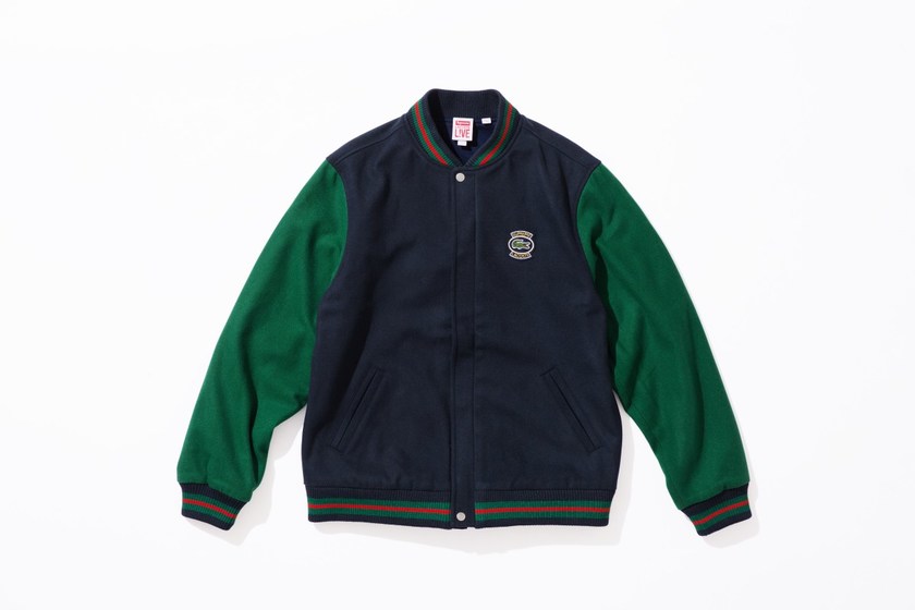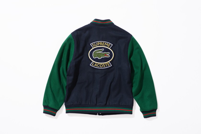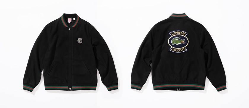 继去年首度携手之后,由 Supreme 与法国经典品牌 Lacoste 共同打造的 2018 春夏联名正式发布。延续去年主打的复古运动风,双方本次继续大玩多彩配色,同时在材质上增加变化,带来包括复古羊毛 Varsity Jacket 拼接外套;注入 3M 反光格纹的尼龙 Anorak 套头夹克、Track 运动裤和 Camp Cap 帽款;采用华贵丝绒材质制作的 Half-Zip Track Top 运动外套、Polo 衫和 Bucket 渔夫帽;设有黑、深蓝、卡其、红、绿、粉和白色等多达 7 款配色的连帽衫和圆领卫衣;以及包括 Twill 6-Panel 帽款、Waist Bag 腰包和 Shoulder Bag 单肩包在内的丰富配饰。