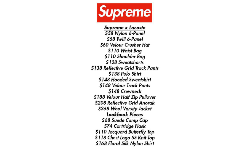 Supreme x Lacoste 联名系列发售价格了解一下!