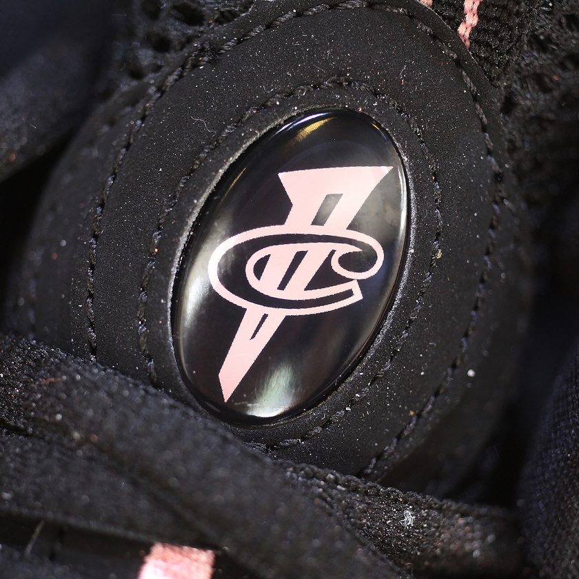 此番玫瑰金喷虽然早先被称之为粉喷2.0版本,但却因其极具金属质感的玫瑰金装扮鞋面,所以被广大鞋友称之为玫瑰金喷。相比于OG版本粉喷,这款玫瑰金喷配色更加柔和,搭配半透明蓝水晶大底,上脚后更显骚气。