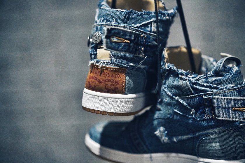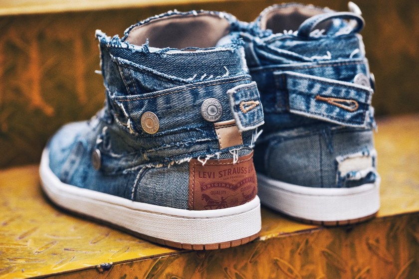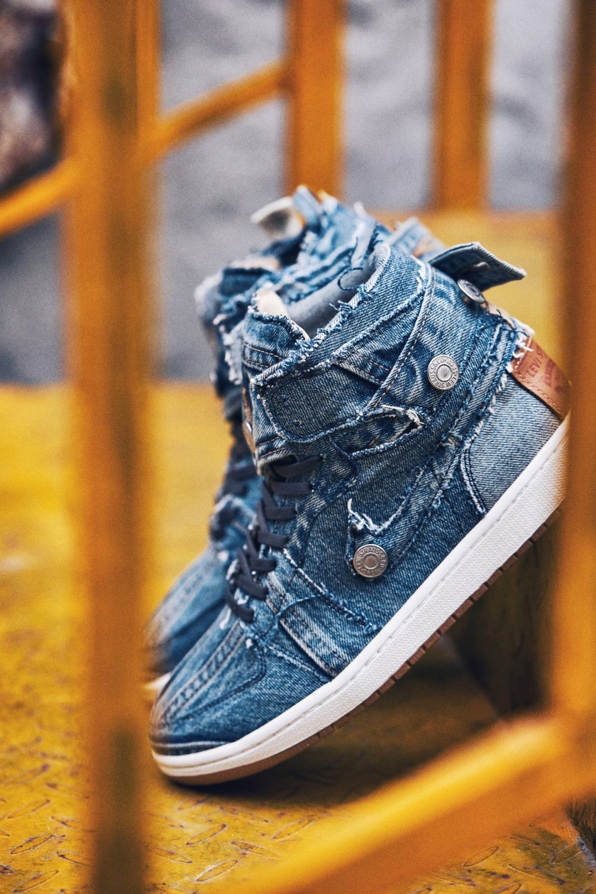 球鞋客制单位 The Remade 本季还带来一双以 Levi’s 经典丹宁外套重新塑造的 Air Jordan 1 客制鞋款。