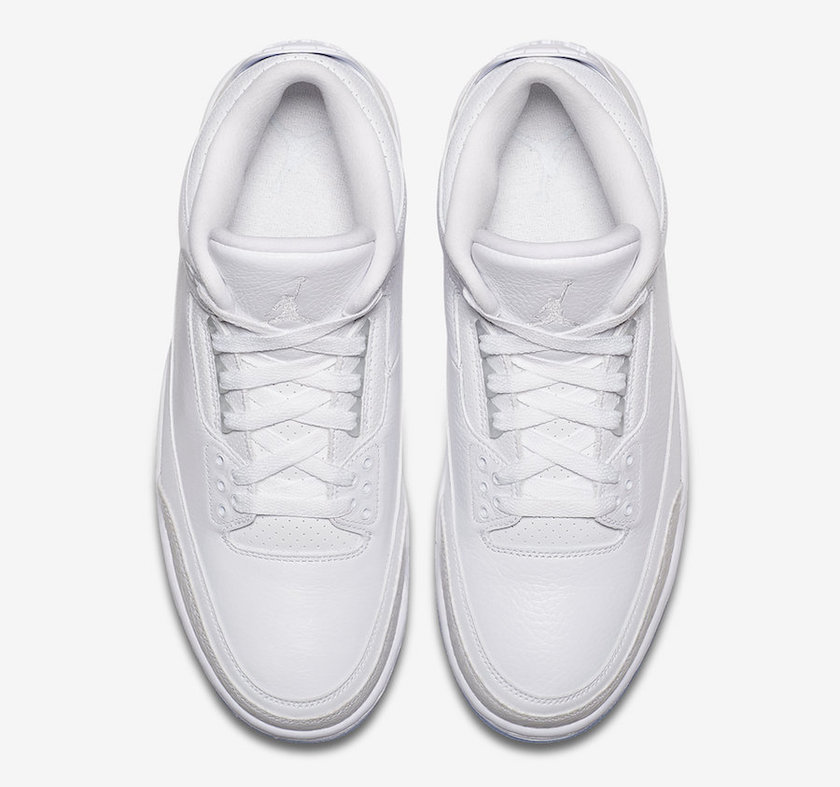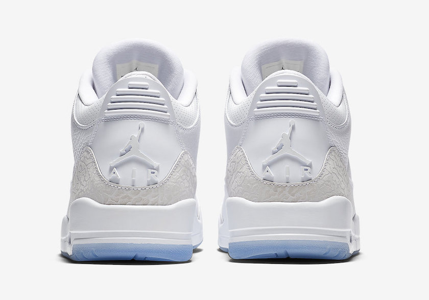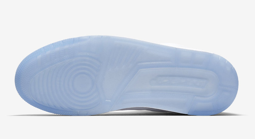 然后也是同为五月登场的 “Pure White” 了,纯白的鞋身,乳白色的爆裂纹设计,以及清爽的半透明蓝水晶大底,十分适合夏季穿着。配色上这款 “Pure White” 有点类似于2007年的 “Pure Money”,仅仅有少许细节上的不同而已。