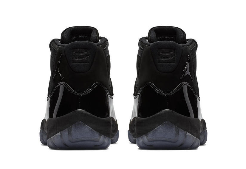 此番 “Cap and Gown” 配色采用全黑的配色基调。采用经典的OG装扮11代鞋型,宽大的漆皮为鞋款带来更大面积的光泽。搭配哑光色调的麂皮鞋领,整体层次分明,质感爆炸。后跟的 Jumpman Logo 以电镀材质装点,搭配烟熏装扮的黑色大底,极具辨识度!