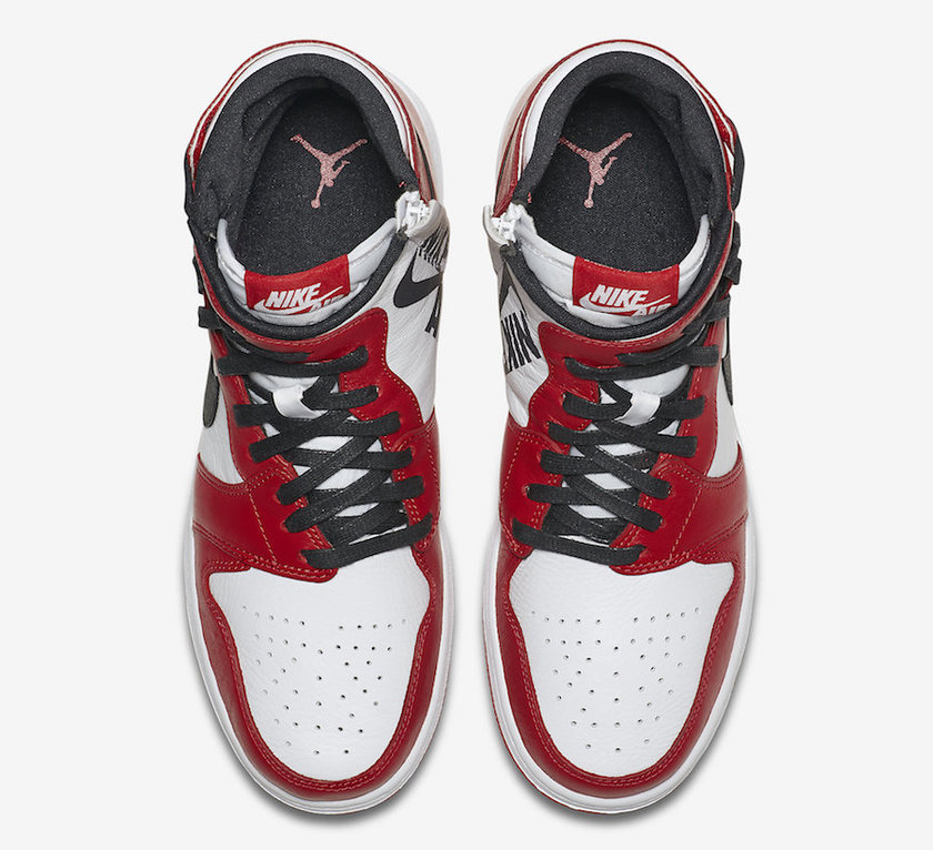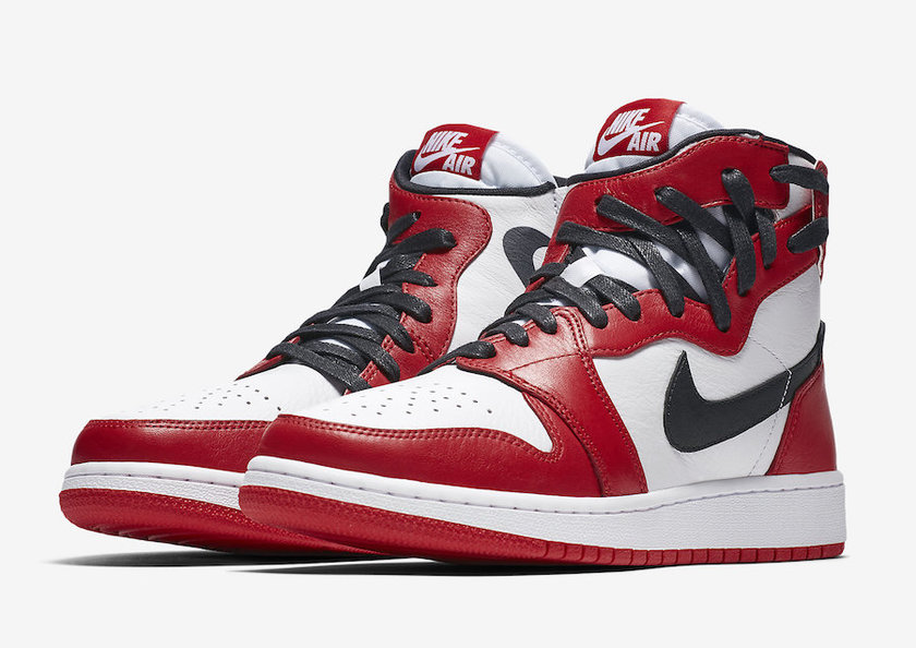 以经典的 Air Jordan 1 为蓝本,以解构主义设计重新加以改造,打造出全新的 Air Jordan 1 Rebel。采用类似 Nike Air Footscape Woven 的鞋带设计,将鞋带拉至侧面,将外侧印有飞翼 Logo 的鞋帮拉至后跟。而方便穿脱,鞋款内侧加入拉链设计,巨大的 Nike Air Logo 印于拉链附近,彰显其独特身份。
