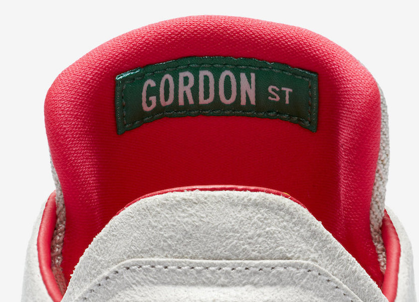 这款 “Gordon St.” 配色是以乔丹儿时旧宅为设计灵感,以浅卡其搭配黑红二色将主题呈现。鞋舌中绣有 “Gordon St.” 字样的标示,直击设计主题。