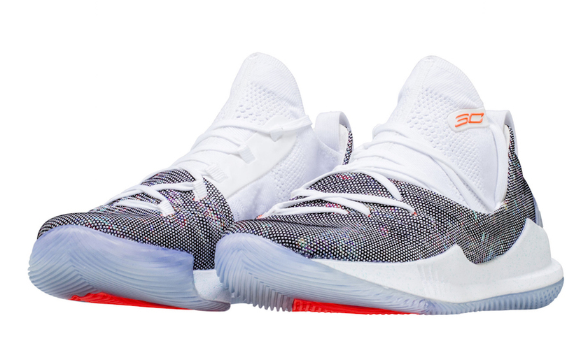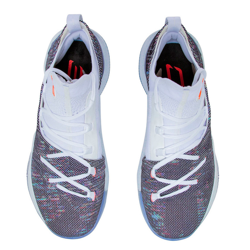 这款 UA Curry 5 “Welcome Home” 采用与首发 “Pi Day” 一样的低帮鞋型,整体以“π”为灵感,将“π”的轮廓融入鞋款外侧一体化保护软壳设计之中,设计上匠心独运。配色上 “Welcome Home” 以纯白为基调,橙色的 “SC” Logo 出现于鞋舌,一体化保护软壳则以多彩色调呈现,十分绚丽。蓝水晶大底中嵌入橙色模块,在增加抓地力的同时为鞋款再添一份细节。