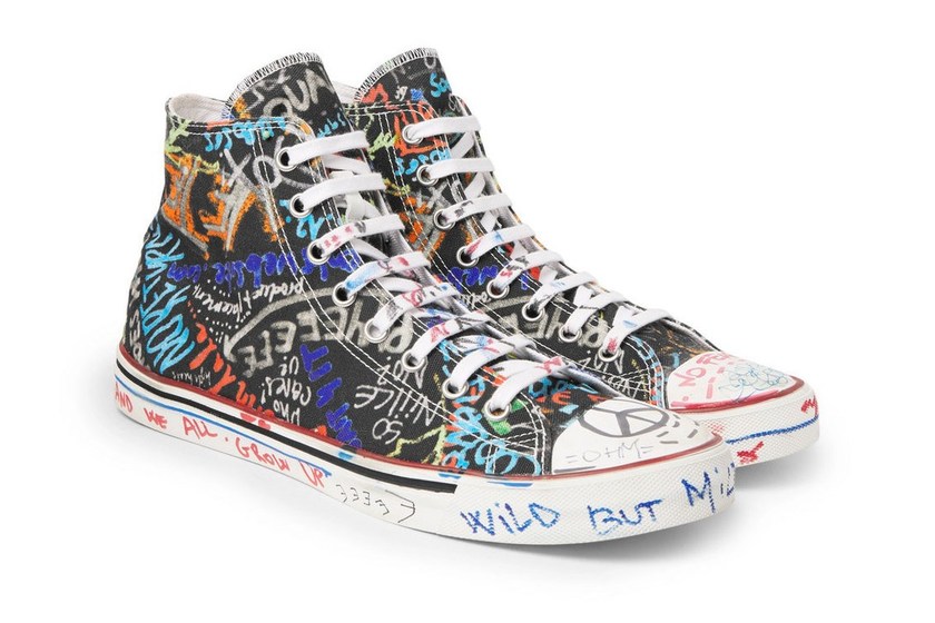 由 Demna Gvasalia 主理的 Vetements 热潮虽然稍微降温,但在数据平台 Lyst 早前发布的最热门品牌排行榜中,Vetements 依然占据著第六名的位置。Vetements 2018 春夏新品陆续上架,此次带来了自家出品的帆布鞋款,以 Converse All Star 作基调的简将线条,却布满了由 Demna Gvasalia 所设计绘制的“artful scribbles”涂鸦,内容除了关于爱与和平之外,亦有来自 1970 年代乐队 Funkadelic 的《Free your mind》专辑的元素。有兴趣的朋友目前已可在 MR PORTER 网站购买得到。