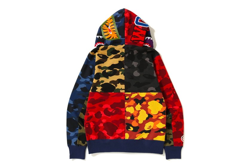 A BATHING APE 继续迎来每周的新品放送。各位都知道 BAPE 的猿颜迷彩一向深得猿迷们欢迎,这次品牌便决定来个大结集,将多个不同配色的猿颜迷彩拼合推出 Mix Camo 服装系列,系列包括连帽外套、卫衣、长裤、短裤及 T-Shirt,至于颜色上则包括红、蓝、绿、紫、黄及橙,都是 BAPE 的特色及具象征的猿颜迷彩。这个 Mix Camo 系列将于 8 月 4 日发售。