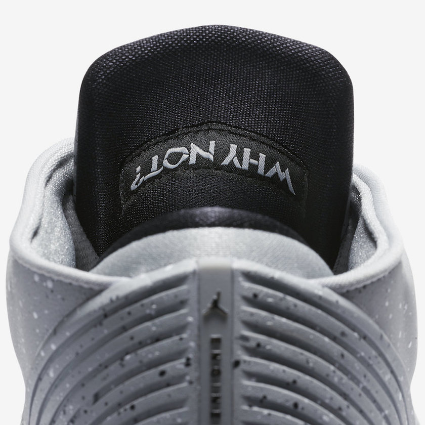 此番释出的 Jordan Why Not Zer0.1 Low “Cement” 整体被浅灰色调覆盖,鞋面布满黑白二色的泼墨细节,Jumpman Logo 以及 RW Logo 辅以哑光黑色点缀,着实符合“水泥”主题。