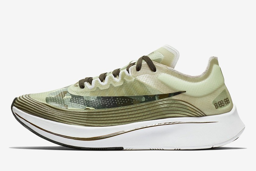 Nike 旗下人气跑鞋 Zoom Fly SP,凭藉前卫的流线外型与舒适脚感深得许多鞋迷爱戴。近日,品牌就再度为 Nike Zoom Fly SP 推出两款全新配色,鞋身维持一贯半透明弹力编织鞋身结构打造,这次则是以军事十足的军绿色为主调,而鞋则的 Swoosh Logo 则配以极具特色的迷彩呈现。目前该鞋款目前已于日本地区 Nike 专门店上架。