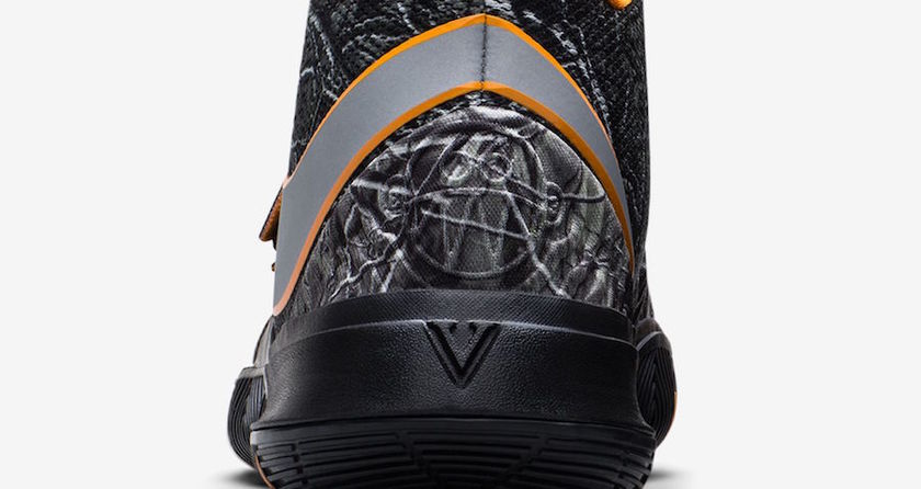 不过与官方释出的首发配色不同,这款欧文上脚的 Kyrie 5 是与 Travis “Taco” Bennett 合作推出的 Nike Kyrie 5 “Taco” PE 配色。其鞋身布满枯叶元素图案,鞋面细节、内衬、Nike Swoosh 以及大底法蒂玛之手纹身图案均辅以亮眼的橙色点缀,硕大的 Nike Swoosh 还加入 3M 反光设计,上脚绝对拉风。