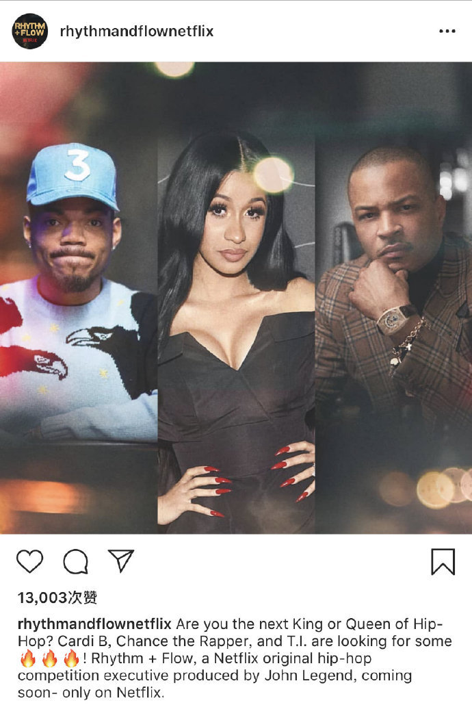 “美国有嘻哈” 即将上线啦!由 Netflix 与知名音乐人 John Legend 联手制作,这档名为 Rhythm + Flow 的 Hip Hop 选秀节目将会在 Netflix 独家播出。而评委团队由 T.I .、Cardi B、Chance The Rapper 组成,阵容非常强大。美国原本就是 Hip Hop 文化流行地,这档 real 原汁原味的说唱节目绝对会燃炸!
