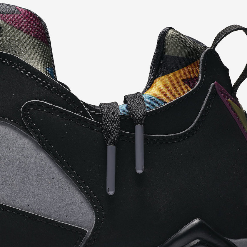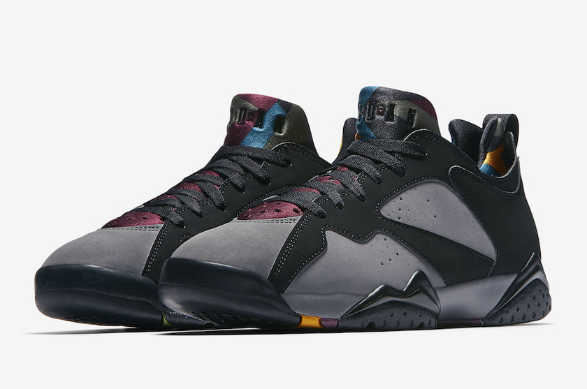 这款低帮 “Bordeaux” 配色是以 7 代经典的元年配色 Air Jordan 7 “Bordeaux” 为蓝本打造。灰色和黑色的鞋面,搭配波尔多酒红鞋舌,丰富色彩的内衬,还有后跟 7 代标志性的箭头“23”号徽章,都是向曾经的经典致敬。