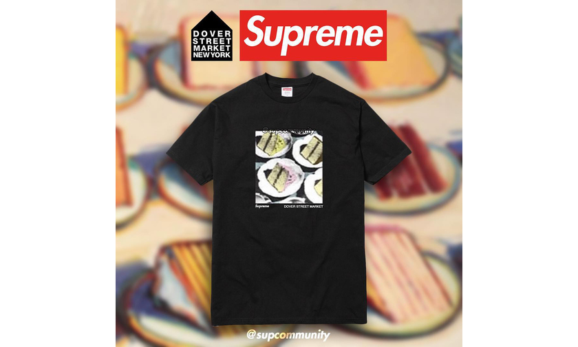 近日,@supcommunity 透露本周 Supreme 将会发售一件 Dover Street Market 独占限定 Tee。从谍照图来看,今年独占限定 Tee 胸前的图案是小蛋糕。Supreme x DSM 独占 Tee 将在本周四在 DSM 纽约门店和 DSM 线上商城上架,喜欢的朋友可以关注一下。