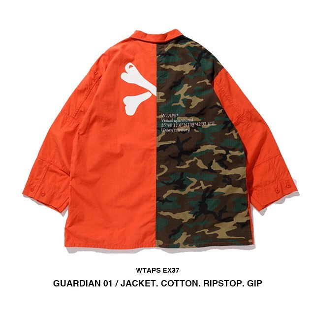 设计上依旧延续军事风格,但背后用上了 WTAPS 经典的 Crossbone 骨头元素,与此同时橙色款的背部更是进行了迷彩拼接处理,彰显潮流风尚。