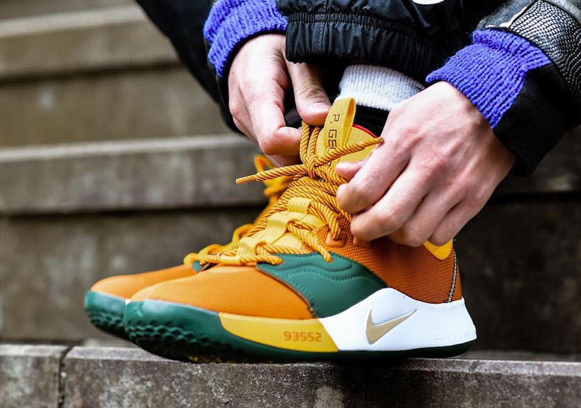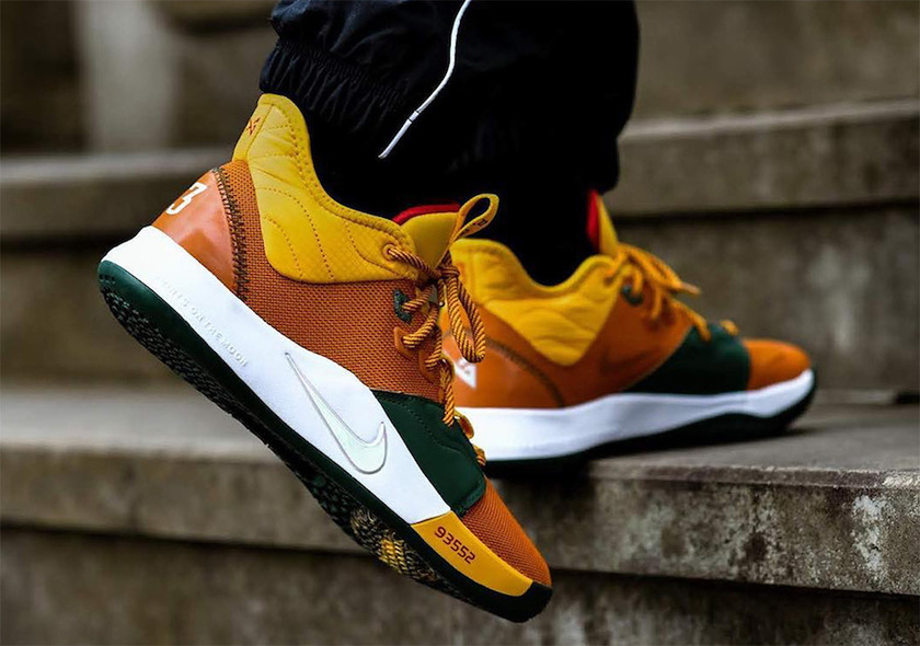 他的全新全明星PG3在年前正式发售,借着此次全明星也是一个绝好的曝光机会。不过这次的PG3全明星配色却并不像以上的几款那么亮眼,棕黄绿两色的搭配让它看起来更像爵士队配色,可以说是全明星配色中的一股清流了。