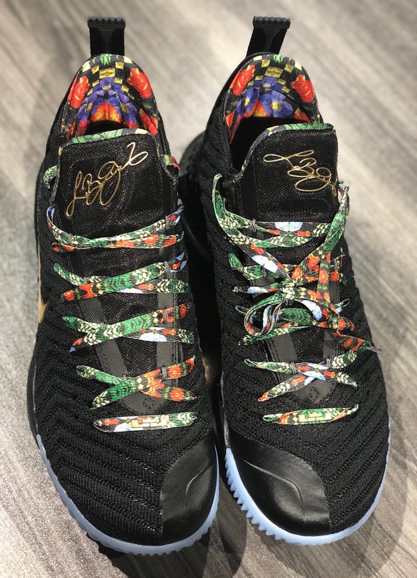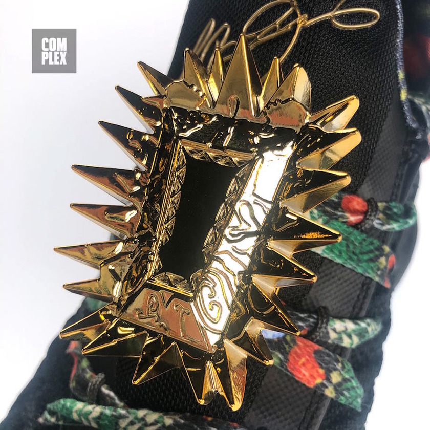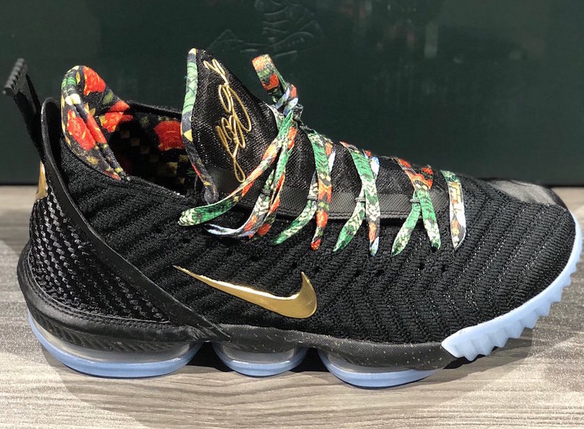 此次在LeBron 16上再次将曾经用于LeBron 9上的Watch The Throne(凝视王座)配色展现,金色的鞋带扣和细节点缀已经花色内衬鞋带尽显奢华。这款配色将于全明星赛期间发售,因此大概率詹姆斯就会上脚这款配色的LeBron 16登场比赛。