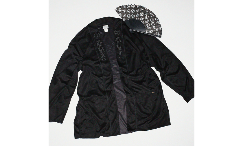 其中比较让人印象深刻的是改良版的道袍,以 DELUXE “ZEN” 版型为蓝本,采用高级仿皮制成。此外还带来了注入印花字体和花卉刺绣的短袖,以及折扇和联名滑板等单品。