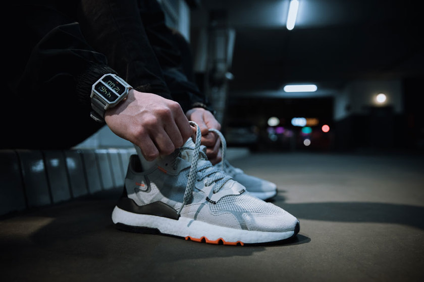 首先先让我大喊一声我永远喜欢阿迪达斯,nite Jogger是今年阿迪推出的全新鞋型。酷炫的3M反光细节,尼龙和网布材质的鞋面轻质透气,还有小部分的麂皮材质撑场面。加上全掌Boost的加持。夏天上街不就图个脚感柔软,穿着透气吗?