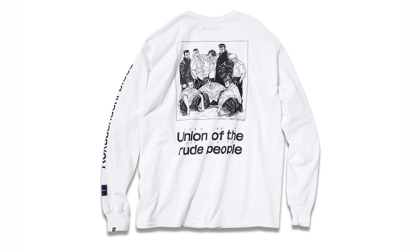 系列设计灵感来源于漫画中的画面,各种漫画场景与品牌标志以及“Union of the Rude People”标语结合,将我们的记忆拉回了那个看漫画的年代。本次系列带来了白色长袖和短袖 T 恤,黑白色调搭配百搭又不失潮流感。