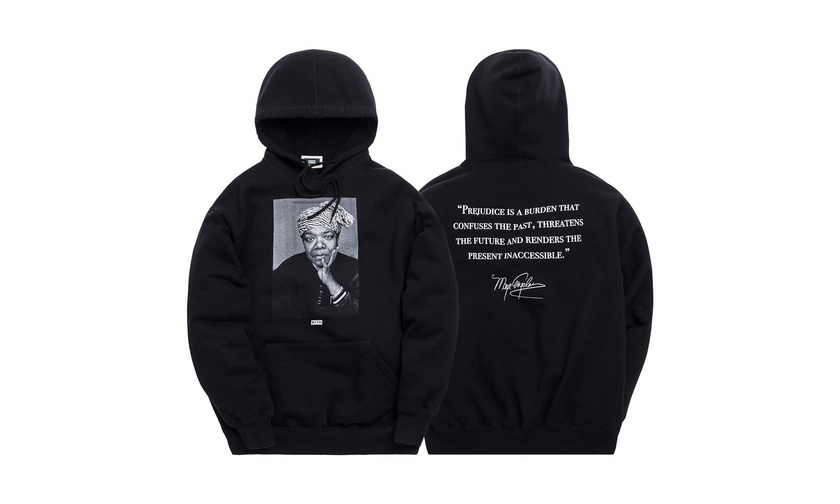 在设计上注入了 Maya Angelou 博士的照片、语录以及手写体签名。值得一提的是这一系列的全部收入将捐助给Maya Angelou 高中,缓解学校资金不足的情况。感兴趣的朋友可以前往 kith.com 了解详情。