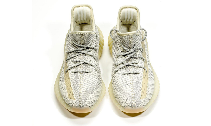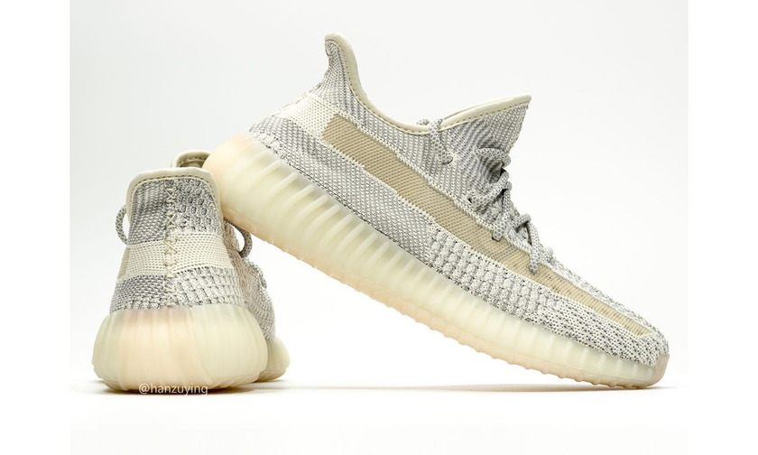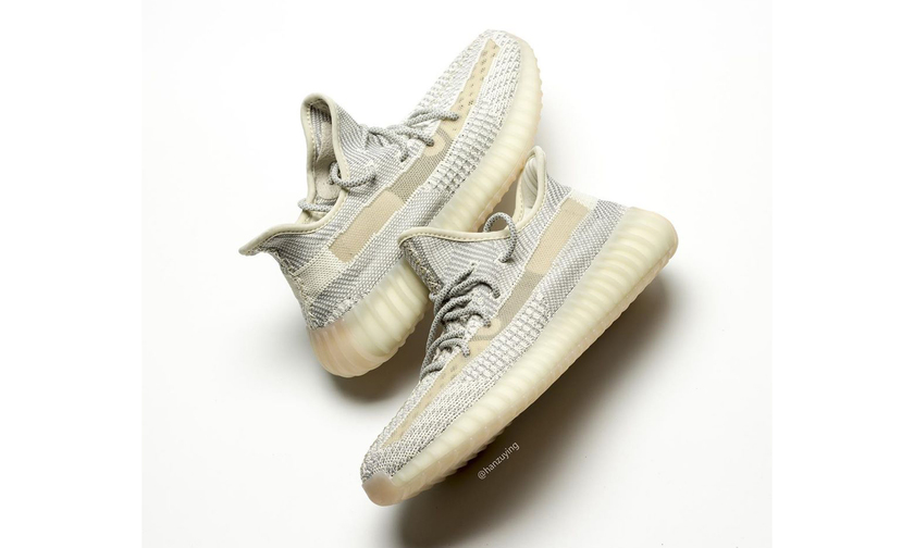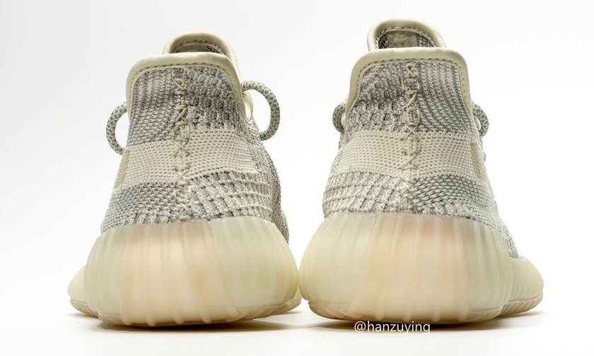 这款 Yeezy 350 V2 外观与 Static 颇为相似,从鞋面到鞋底部分均以浅米白色打造。而它的独特之处在于去掉了鞋跟后部的提环设计,回归了初代 V2 的鞋型。
