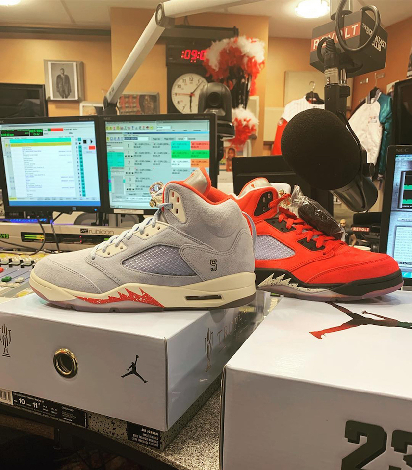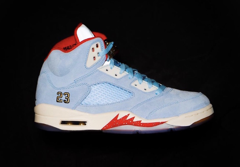 在2016年,Jordan Brand曾经为迈克尔·乔丹的儿子——马库斯·乔丹所开的球鞋店铺带来过一些特别设计的球鞋版本。而其中之一就是在近期曝光、有着极高关注度的Trophy Room x Air Jordan 5。这次发售的联名版本AJ5共有两红蓝两款配色,而红色版本仅作为亲友家属限定没有发售机会,冰蓝配色则成为大家瞩目的焦点。