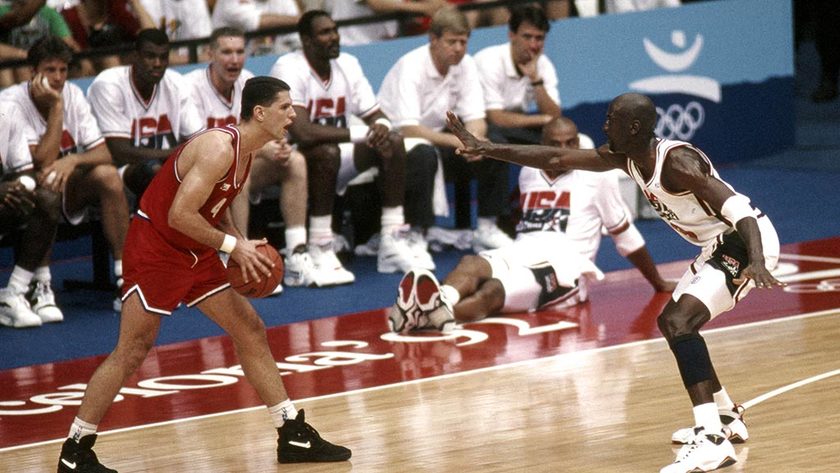 但是梦一队的招募其实是在1991年的9月份启动的,所以梦之队的政治意义很大。虽然强敌已经变成了不攻自破的联盟,但是在1992年巴塞罗那奥运会,美国还是为了宣扬国威,派出梦之队进行“杀人诛心”的行动。