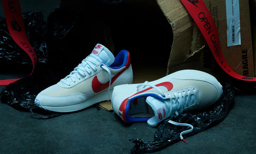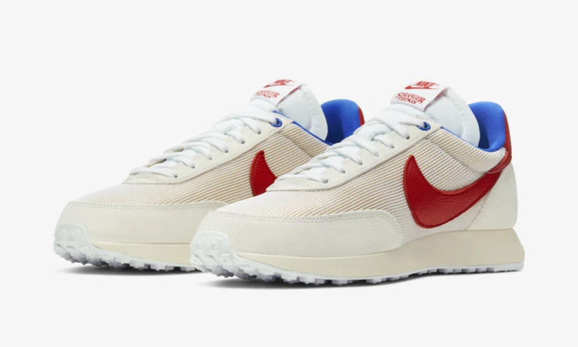 仍旧是 Cortez 和 Air Tailwind ‘79 两款鞋型,Cortez 以红色为主打,白色 Swoosh 与整体形成强烈的对比。Air Tailwind ‘79 则是米白为主,两款联名鞋跟处都印有 1985,与电影故事年份相呼应。