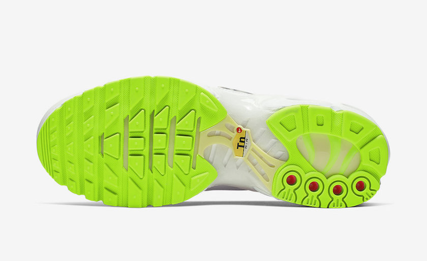 这款全新的 Air Max Plus 以白色为主打,复古影像的注入可以说是这款配色的点睛之笔,让人一看就移不开眼了。鞋带扣与大底的荧光绿色调则给这双鞋增加了活力。