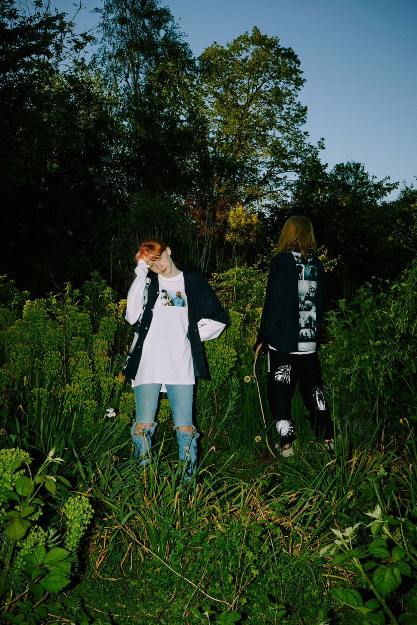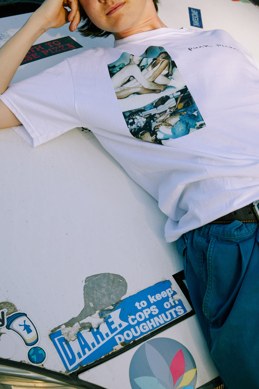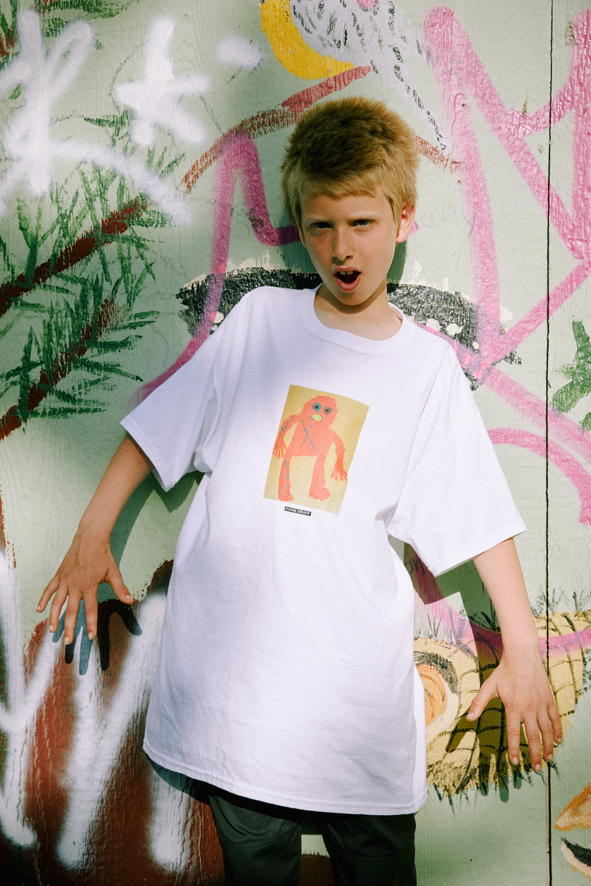 系列主打黑白色调,以 Larry Clark 的著名电影《KIDS》和《BULLY》,以及他的摄影集《Tulsa》、《PUNK PICASO》为主要设计元素,各种怪诞不羁的印花让单品玩味爆棚,极有街头感。