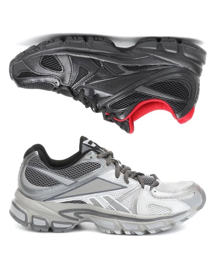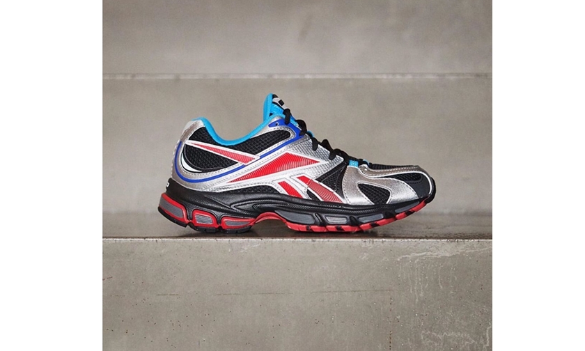 最新曝光的是以黑色为主打的联名,现代感强烈的太空银色以及鞋侧红色的 Reebok logo ,呈现出强烈的科幻感。搭配蓝色内衬及鞋舌细节,营造出色彩上的强烈反差,整体配色前卫又大胆,带着满满的现代潮流风格。