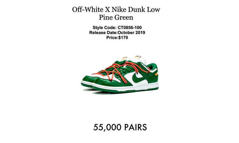货量曝光!Off-White™ x Nike SB Dunk Low 绿色版本有机会入手?