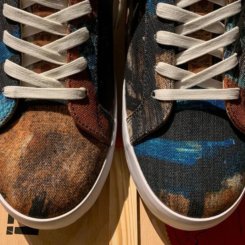 中国香港玩偶艺术家 Michael Lau 最近携手 Nike 带来了联名新作。本次联名以 Nike SB Blazer Low 为蓝本打造,鞋面采用拼接帆布呈现,类似油画的图案极具艺术气息。此外,较为特的是中底的订书钉设计,象征着将绘画画布安装到框架上的情景。搭配独特的鞋舌和后跟标签以及特别打造的鞋盒,凸显出细节设计的巧妙。据悉,这一系列将于 8 月 18 日在上海 CONCEPTS 以及 Fly 店铺举办发布会,感兴趣的朋友可以关注一下~