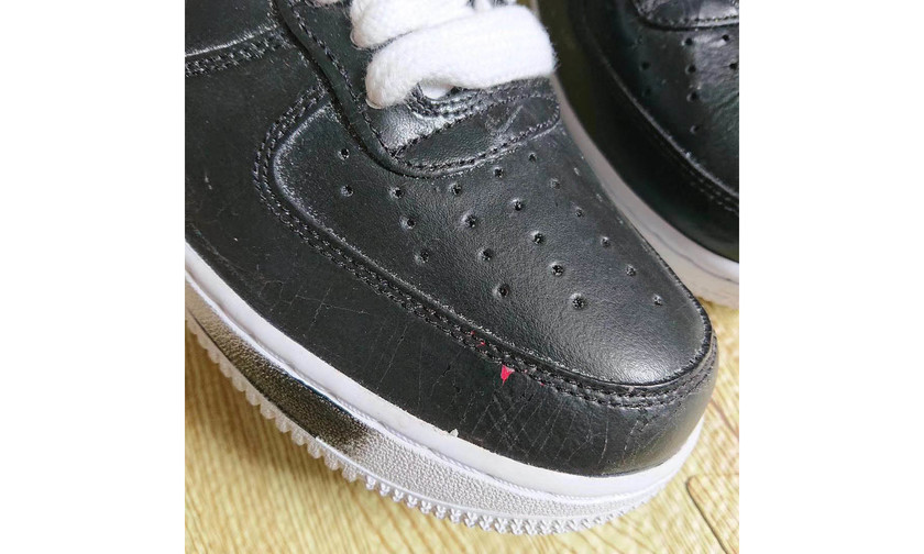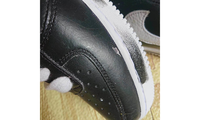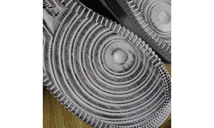 这款 PEACEMINUSONE x Nike Air Force 1 鞋面以黑色呈现,搭配白色 Swoosh 与白色中底,营造出经典复古的氛围。鞋舌上的 PEACEMINUSONE 标志性的菊花以及一抹涂漆颇为抢眼,设计感强烈。而这双联名最大的亮点还是“刮刮乐”设计,刮掉表现的黑色就会看到内里艺术感极强的彩色泼墨。