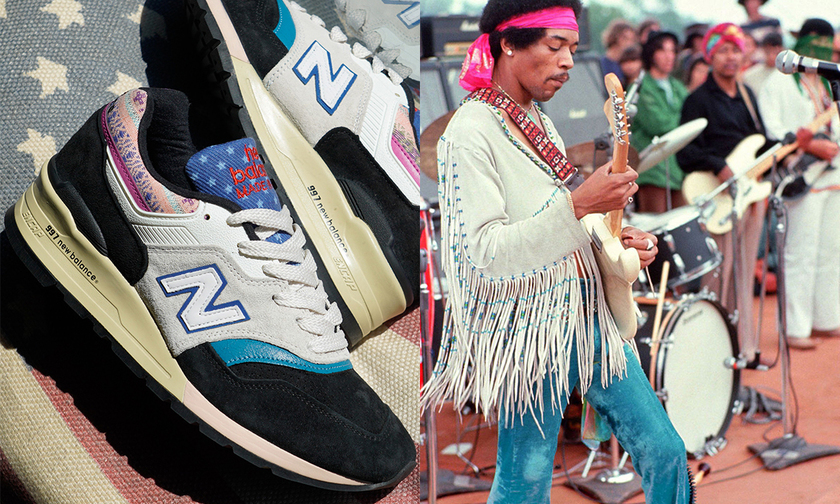 为了庆祝传奇音乐节 “伍德斯托克” 50 周年,New Balance 以最后一位登台表演者 Jimi Hendrix 的穿着为灵感打造了一款特别的 997 配色。