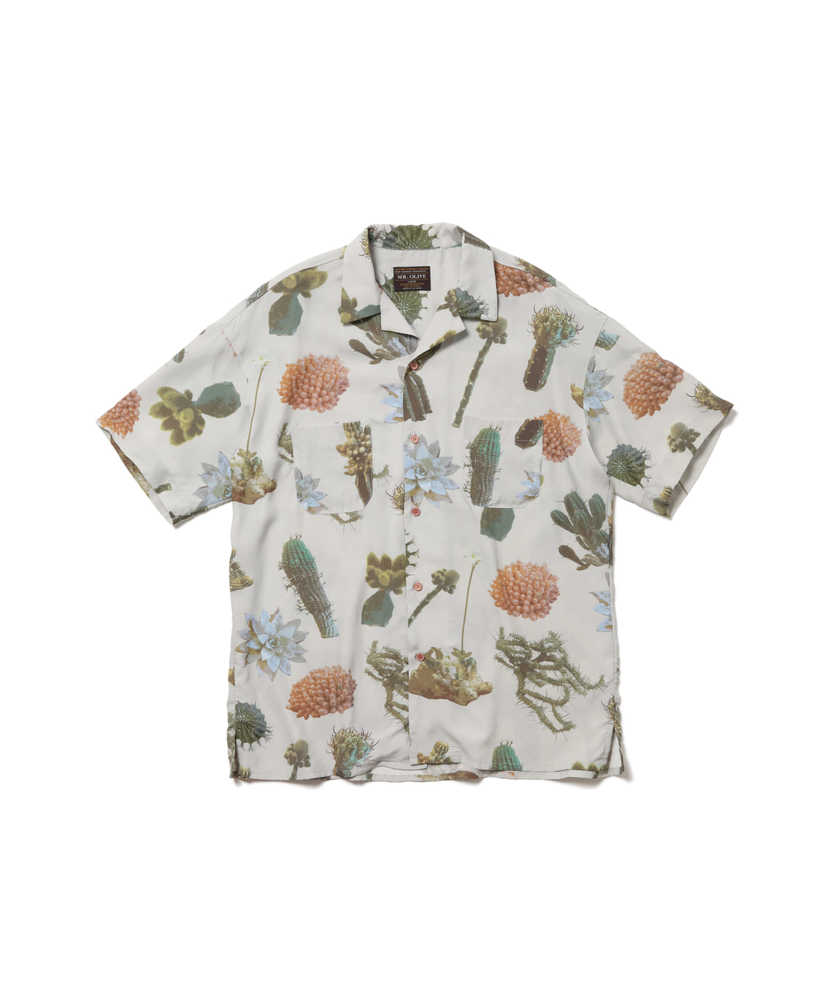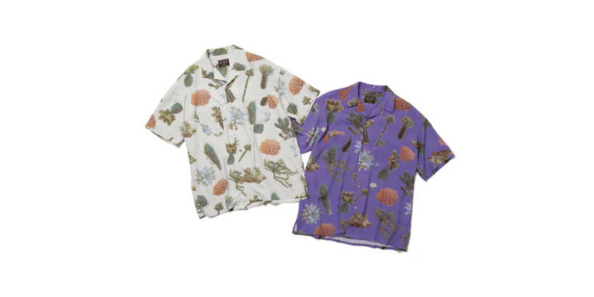 这两件单品分别采用蓝紫色和米白色为主基调,以多样的仙人掌造型印花呈现出夏日自然风光。宽松的版型和精致的做工可以看出本次联名的用心。