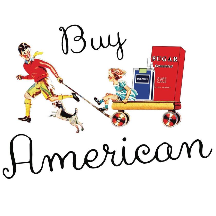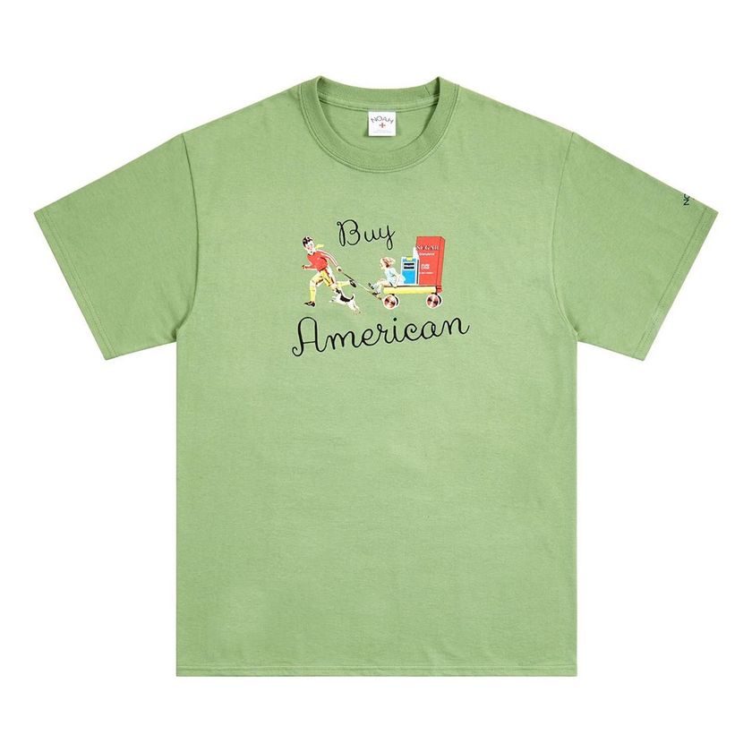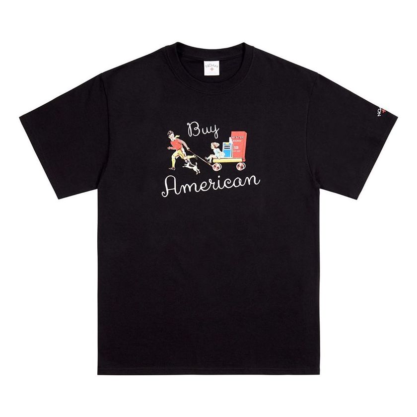系列以黑、白及抹茶绿三色 T 恤作为蓝本打造,在设计上注入了具有争议性的糖与烟草两种商品元素。街头感十足的“Buy American”字样,搭配复古气息满满的印花,辨识度极强。