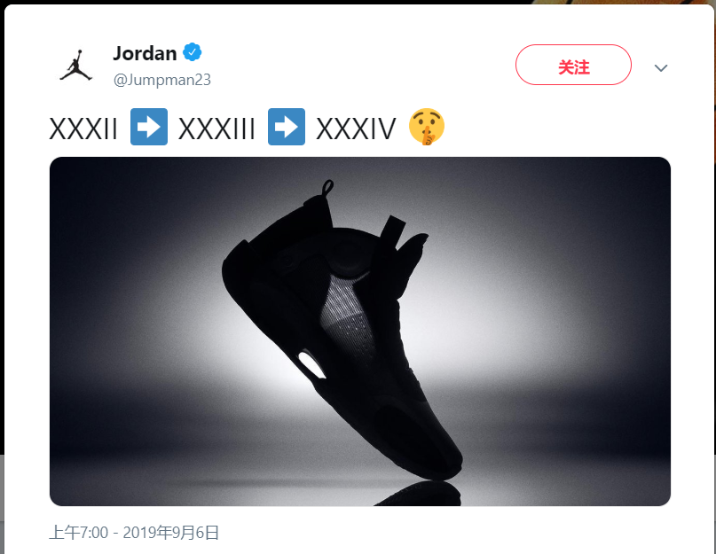 随着秋季的到来,AJ 下一代 Air Jordan 34 成了大家最为期待的球鞋之一。昨天,Jordan Brand 也释出了一点点预告,文案内容包括 “XXXII - XXXIII - XXXIV” 以及嘘声表情符号,并且配上了神秘的球鞋图片。虽然 AJ 34 的庐山真面目还未揭晓,不过从预告照片可以看出鞋侧为半透明设计,可能表明使用了特别的科技。据悉,Air Jordan 34 将于今年秋季发布,相信大家很快就能看到这款新一代 AJ 了。