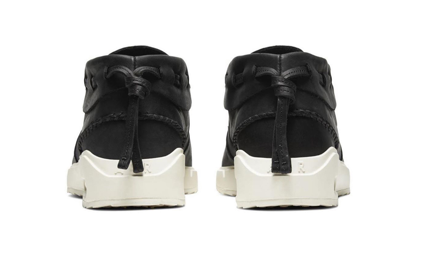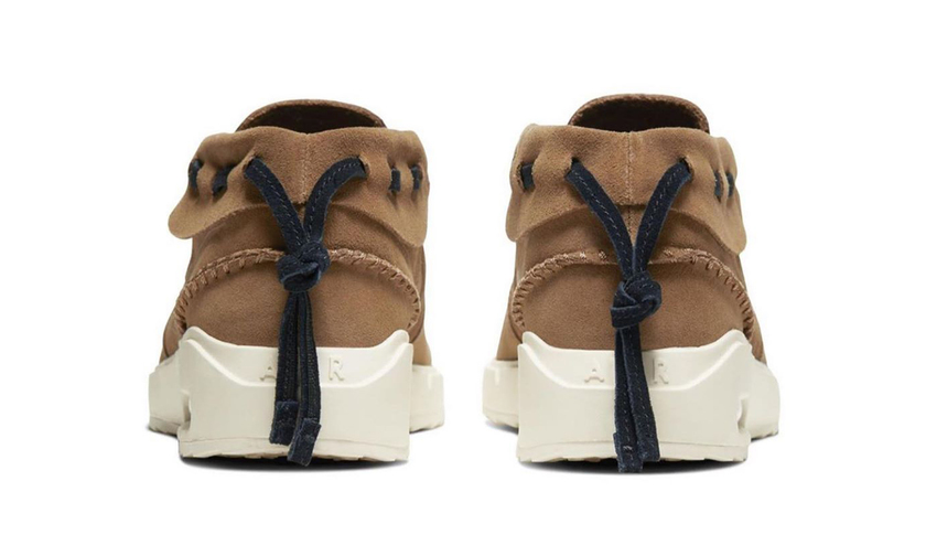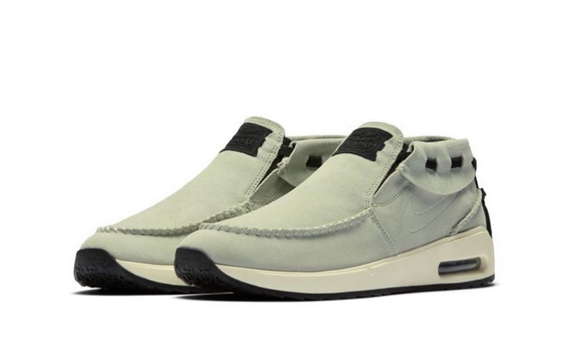 这次的联名系列酷似 Visvim ,鞋身以麂皮、皮革材质呈现,鞋带系统由松紧绑带代替,整体风格偏于休闲。而鞋底的可视 Max 气垫又保证了缓震功能性,仅看后跟部分,也能发现这款联名与 Air Fear of God Moc 有点神似。