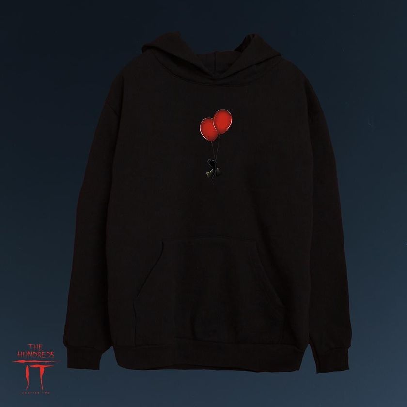 系列以影片中辨识度极强的“红气球”为主打印花,推出了黑色连帽卫衣以及圆领卫衣单品。此外,电影中的“惊悚担当” 小丑形象也被注入到了单品中,带来了白色 photo tee 。这一系列细节打造可以说是非常“逼真”,胆小的朋友可能要好好考虑了,不然猛一看到可能会吓到出窍。