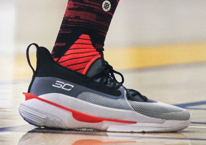 NBA 新赛季即将到来,球星们也进行着各自的训练。继 kyrie 6 和 Lebron 17 在训练中曝光后,金州勇士队的当家球星斯蒂芬·库里近日也在训练中揭晓了 Curry 7 。