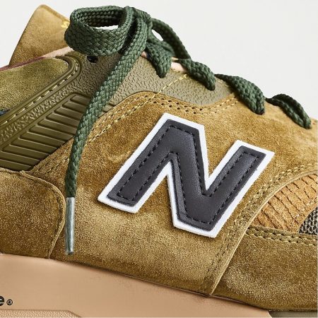 麂皮材质搭配网眼材质打造的鞋面,层次感极强。搭配蛇皮纹理细节点缀,质感出色。而鞋舌细节处的金色 “New Balance”logo 则彰显了身份。