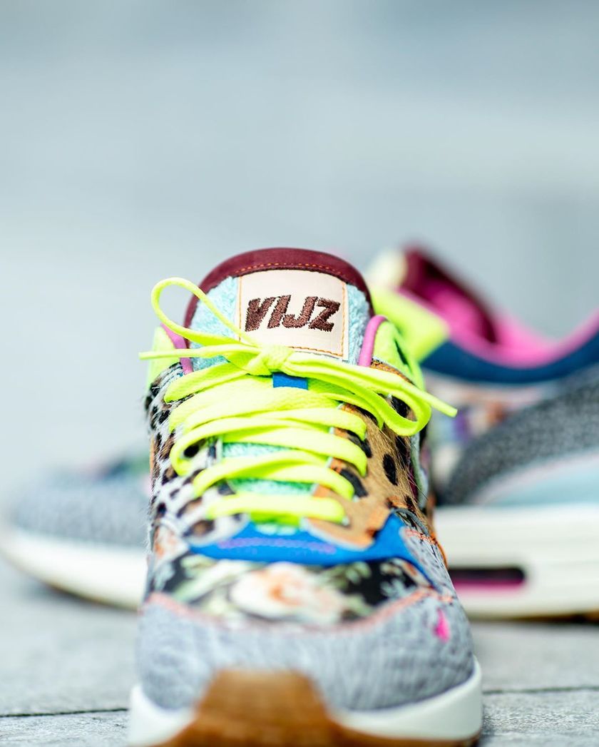 最近 vijzbespokes 刚刚打造了一双非常有特色的 Air Max 1 。这双 Air Max 1 不仅色调非常丰富,有彩虹条纹细节,还结合了爆裂纹、斑马纹、豹纹等30多种特殊元素和动物素材拼接,吸睛度爆棚。