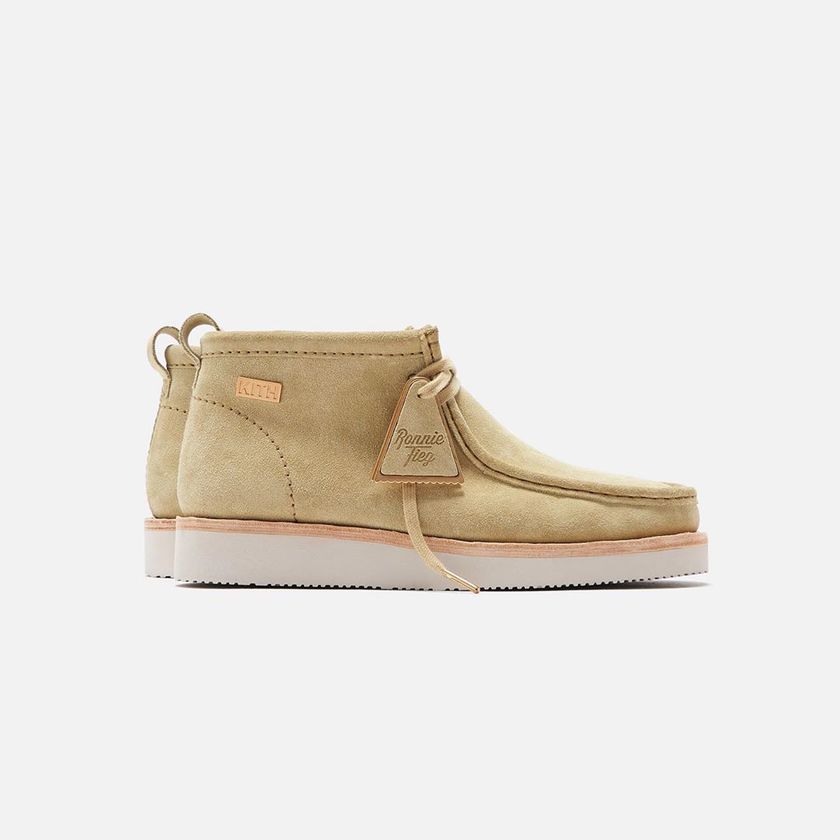 系列以经典 Wallabee 鞋型为蓝本重塑,优质麂皮与羊毛内衬的结合,带来极佳的质感和出众的保暖性能。细节处,“Ronnie Fieg”字样和 KITH logo 吊牌点缀,尽显联名身份。
