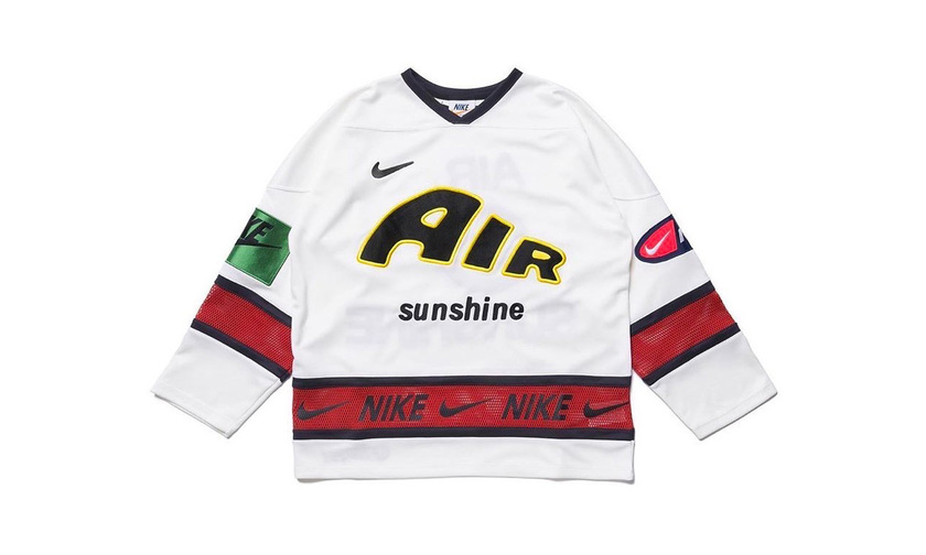 服饰系列单品包括棒球衫、运动套装及圆领卫衣等。宽大廓形剪裁搭配大 AIR 等醒目的设计,街头感十足。黑白红绿等经典色调的点缀,则又带来浓郁的复古气息,让人看了就很心动。