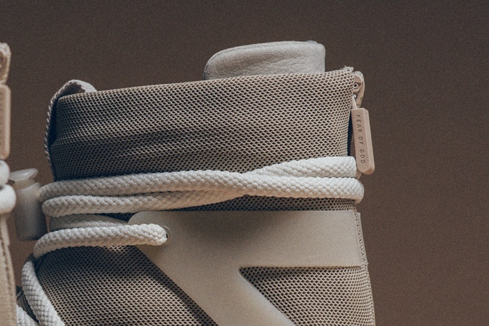 细节方面,同色系鞋带、 Swoosh 呈现和谐的外观,专属吊牌及 Fear of God 点缀的弹性锁扣,彰显联名身份。