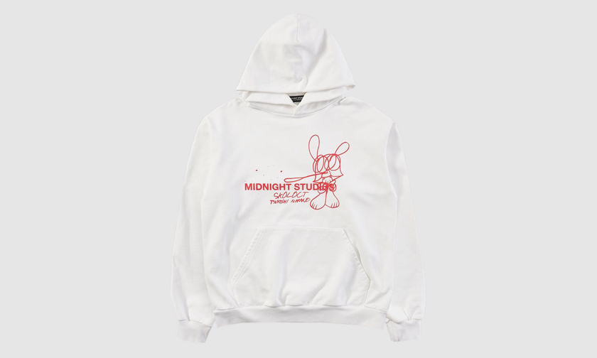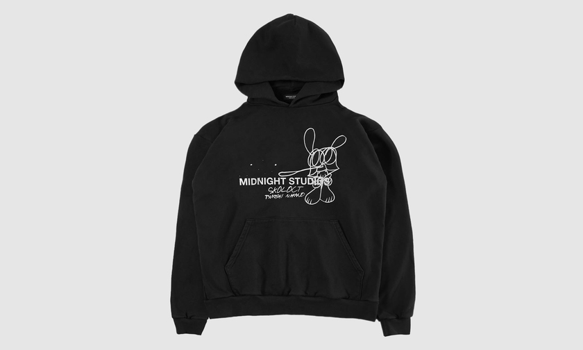 单品涵盖连帽卫衣、短袖 T 恤以及方巾配饰等,在设计上以黑色、白色以及红色为主调。 SKOLOCT 标志性兔子图案设计与 MIDNIGHT STUDIO 品牌 logo 的注入,除了带来更高辨识度以外,还提升了系列的趣味性和讨喜程度。